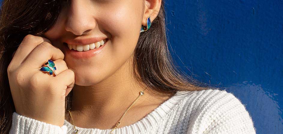 Butterfly collection celebrates a woman’s transformation into her authentic self - free to express herself, bold to go after her dreams and strong to embrace her true identity, flaws included. Vibrant and full of life, the butterflies come in shades of blue, orange and green to represent three unique identities of the modern woman. Pick a butterfly that matches yours!
